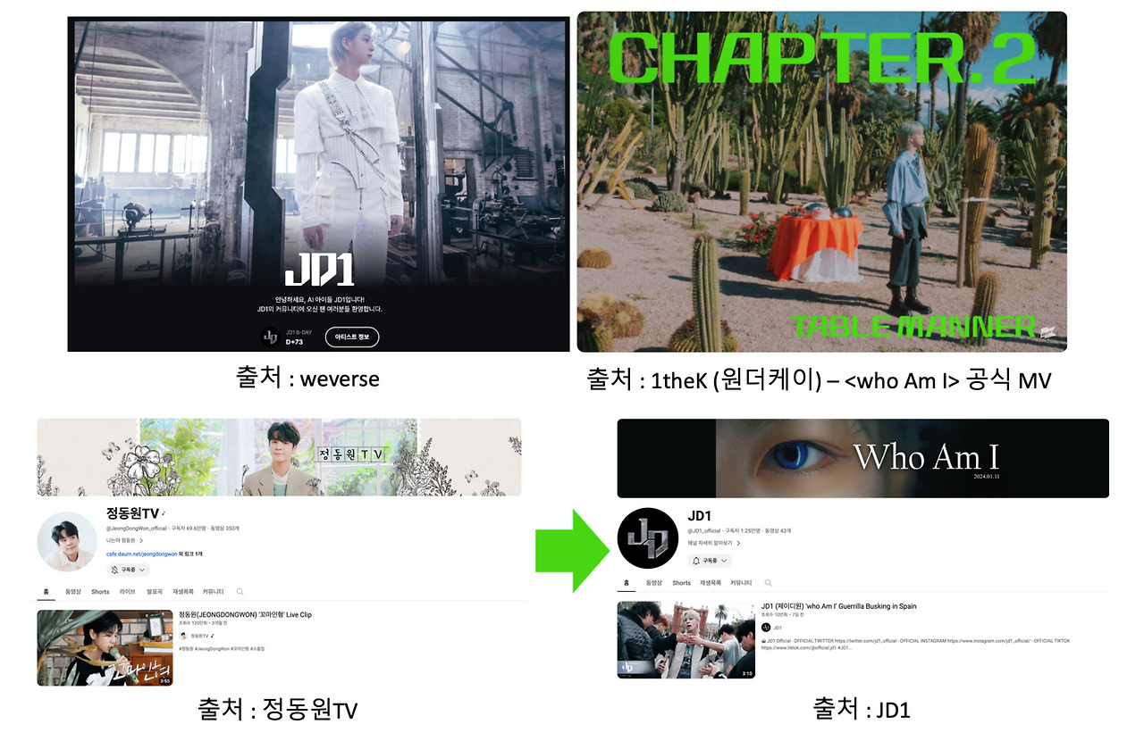 이번에 트로트 가수 정동원 군이 음원을 발매했습니다. who Am I라는 음원이죠. 그리고 아티스트 명은 'JD1'입니다. 장르와 분위기도 확 바뀌었습니다. 팬분들은 JD1 아이돌 데뷔 축하한다고 댓글을 달았죠. JD1이라는 새로운 유튜브 채널도 개설했고요. 기존 채널은 정동원TV죠. 즉, 이미지 변신입니다.