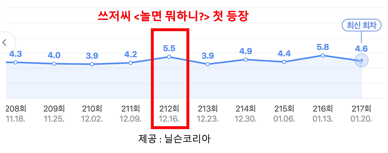 <놀면 뭐하니>에서 김석훈님의 하루를 담았고, 쓰저씨가 시청률을 견인하기 시작했습니다. 3~4%대에서 4~5%대로 올랐고, 꾸준히 나오고 계시죠. 댓글 반응은 역시 "기존 예능에서 볼 수 없었던 인물이다"라고 달립니다.
