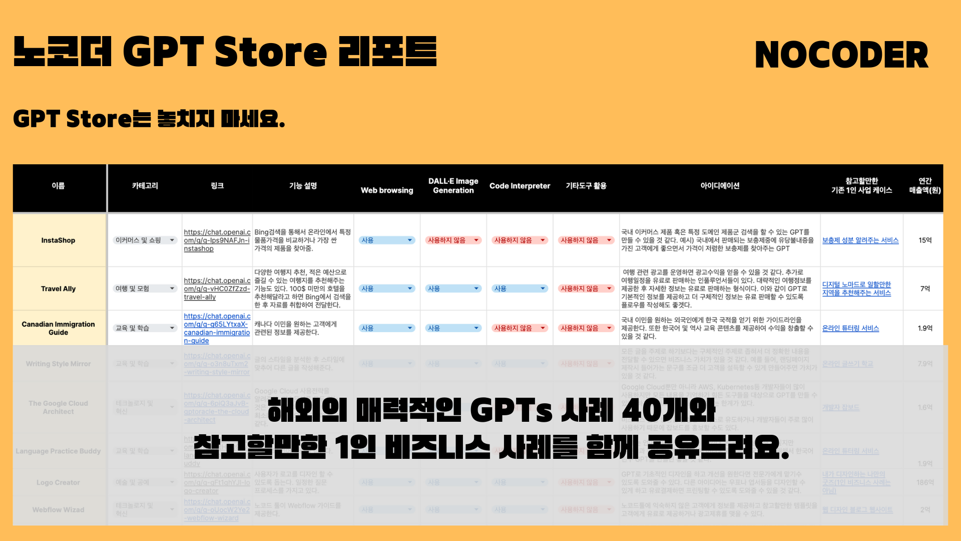 [구독자 이벤트] 노코더 GPT Store 리포트 (40+ GPT Case) 공유해드려요!
