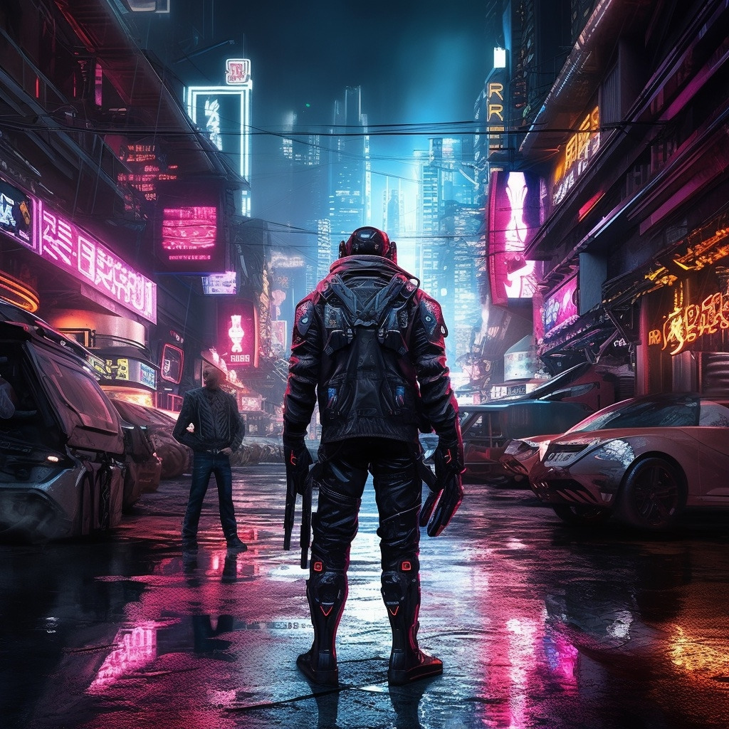 “네온 조명 문신, 사이버네틱 강화, 첨단 무기를 갖춘 사이버펑크 거리 전사를 만들어 디스토피아 거대 도시의 비에 젖은 네온 거리를 배회하게 하세요.”