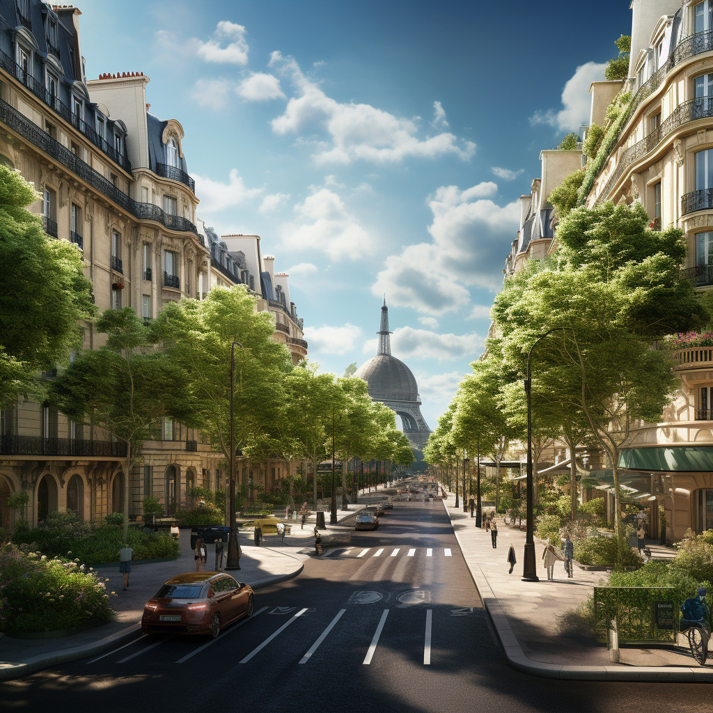 프롬프트: 균일한 외관, 넓은 도로 및 녹지 공간의 통합을 보여주는 파리의 오스만 대로 이미지를 생성합니다.
