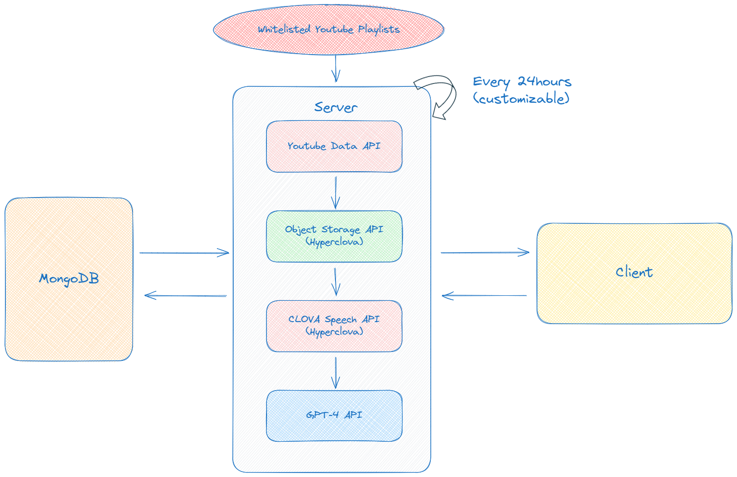 - 구글의 YouTube Data API : 최근 24시간 내에 리스팅한 플레이리스트에서 새롭게 업데이트된 영상 URL을 받아오는데 사용