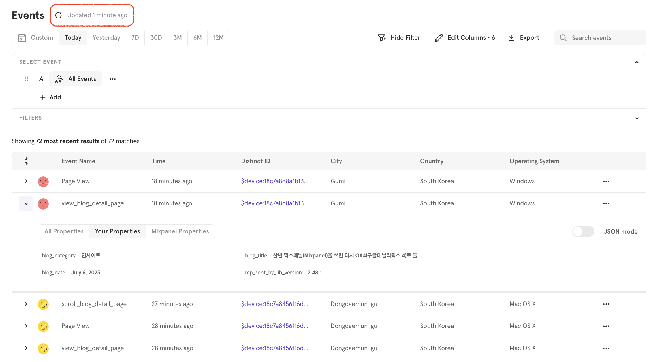 방법은 생각보다 단순합니다. 실제로 이벤트를 일으키고 그것이 정확하게 수집되었는지 확인하면 됩니다. 믹스패널 프로젝트를 기준으로 자세히 설명드리겠습니다.