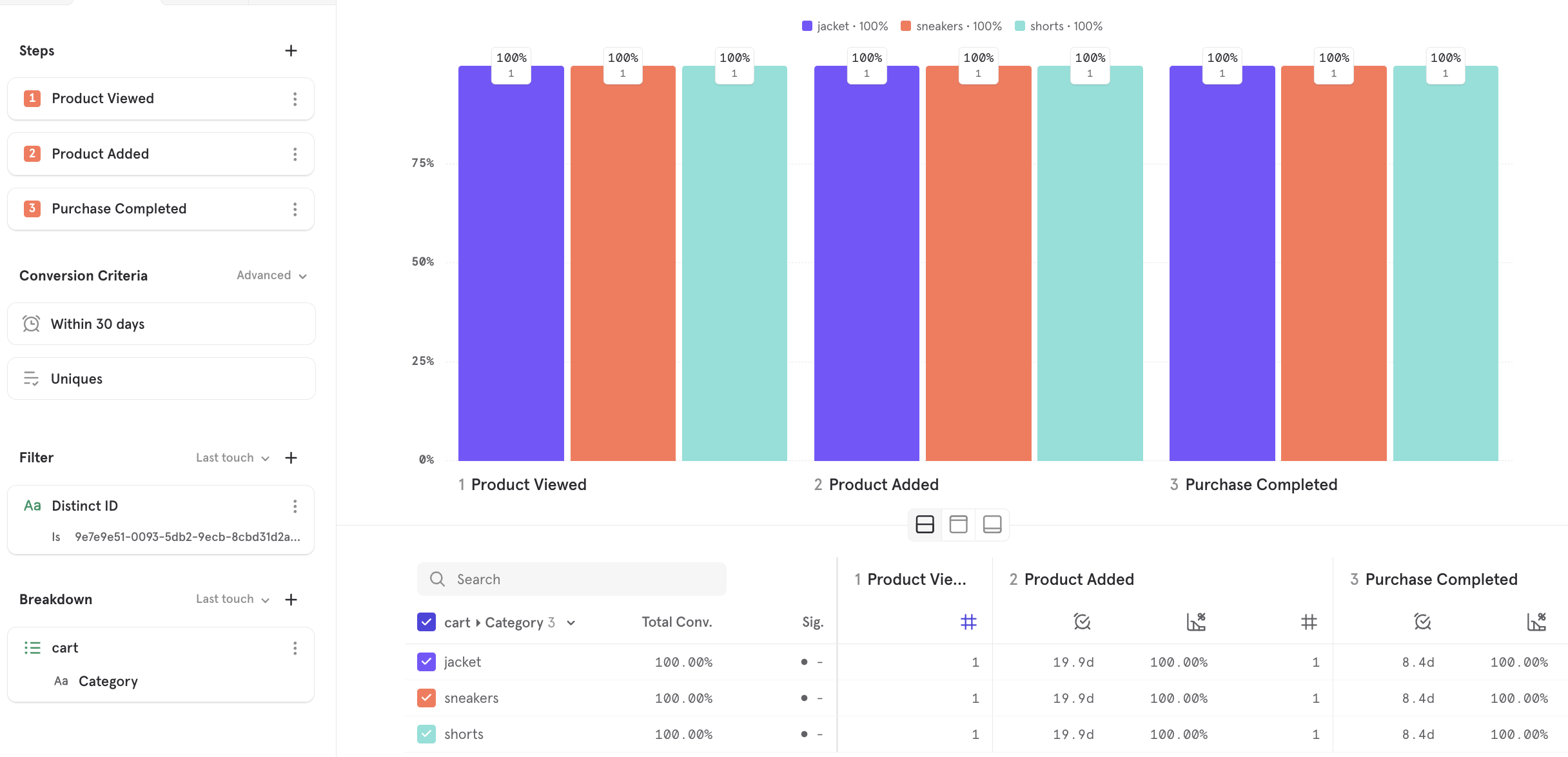 이벤트 데이터를 수집하는 목적은 기대하는 분석을 효과적으로 하기 위해서 입니다. 예를 들어 구매전환율은 커머스 서비스에서 중요한 분석 항목입니다. 그러므로 테스트 이벤트를 발생시키고 전환율 분석을 의도대로 할 수 있는지도 확인해 보셔야 합니다. 이는 데이터 검증과는 별개의 주제이지만 같이 하는 것을 추천합니다. 테스트 이벤트를 발생시키고 만들려고 했던 리포트를 작성하여 기대하는 분석이 가능한지 확인해야 합니다.