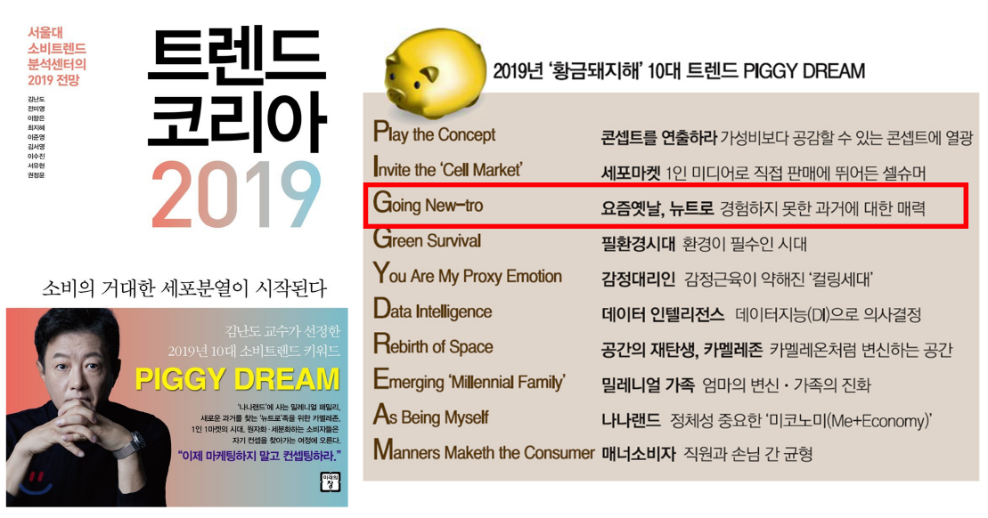 <트렌드 코리아 2019>에선 복고를 새롭게 즐기는 '뉴트로'에 대해 아래와 같이 이야기를 합니다.
