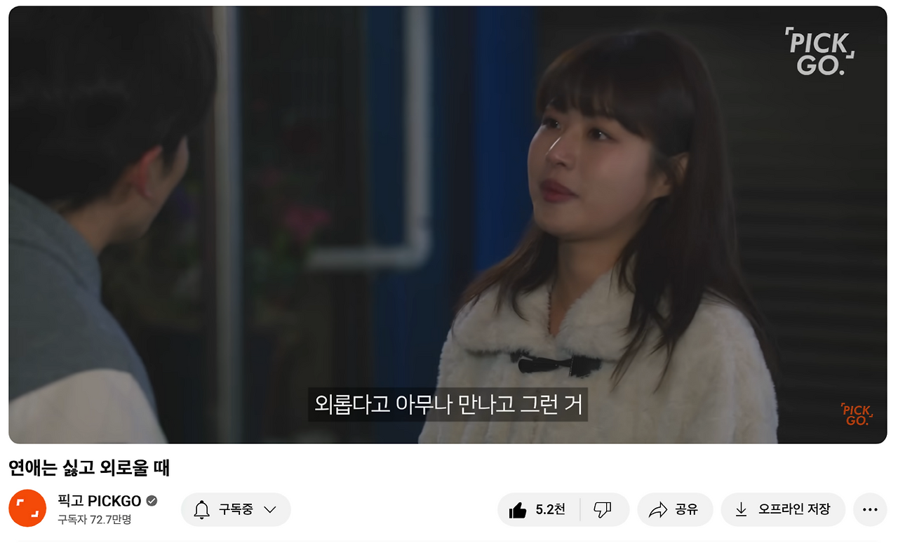 픽고 채널의 '연애는 싫고 외로울 때'의 마지막엔 이런 대사들이 나오기도 하죠.