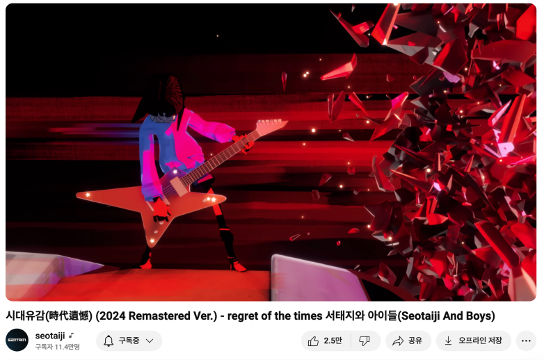 서태지의 <시대유감 (時代遺憾)’(1996)>이 2024년 리마스터된 뮤비가 인급동에 갔죠. 이 영상에서도 마찬가지로, '1990년대와 2000년대를 생각나게 한다'는 댓글들이 많습니다.
