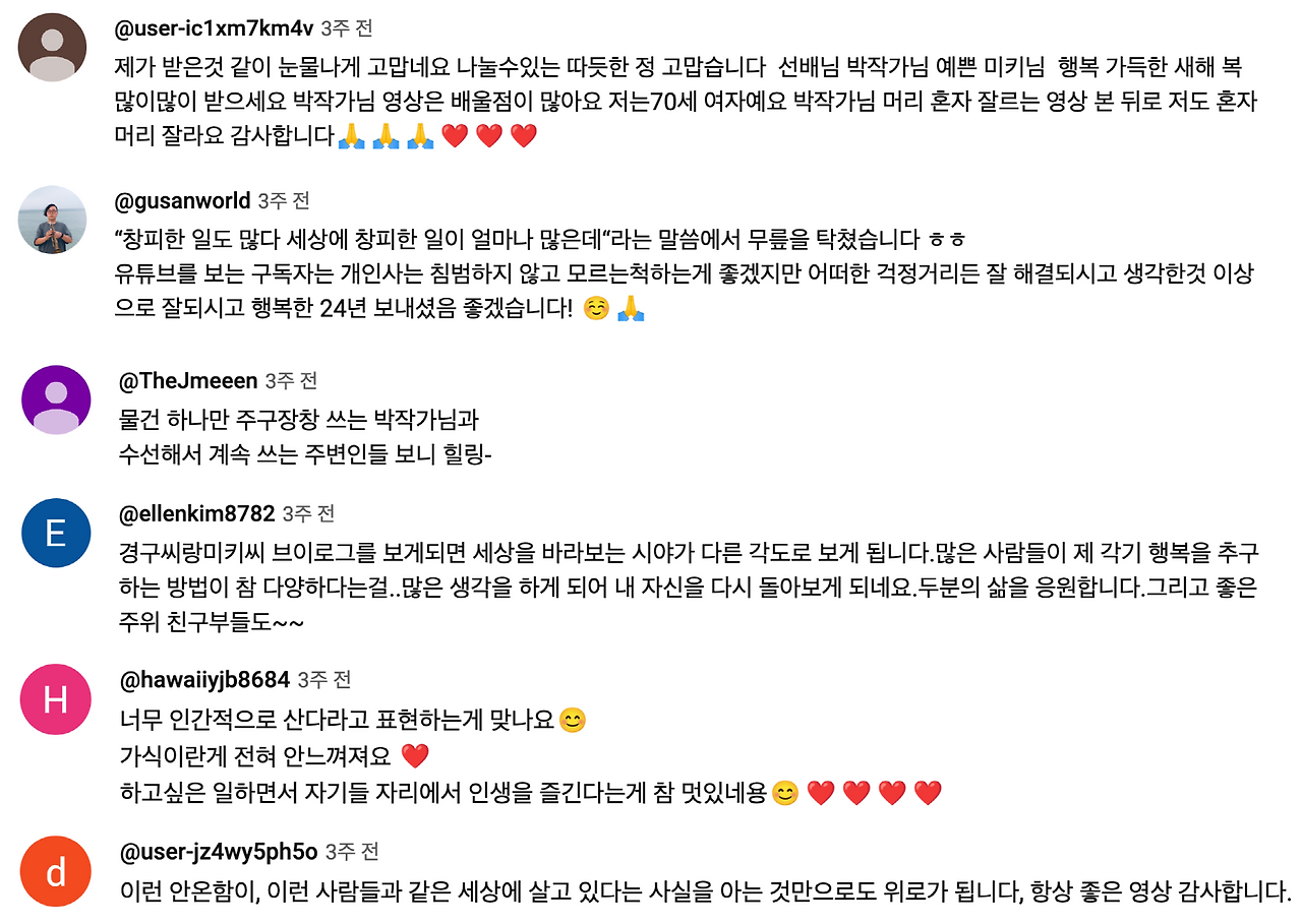 댓글도 "이런 영상은 자극적이여서 안 보게 되는데, 이 영상은 편안하게 보았고, 보는 내내 힐링 되는 시간이었다"고 달립니다.