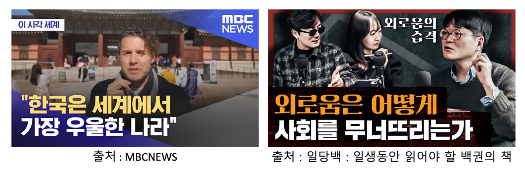 외로움은 '사회적 문제'가 되고 있습니다. 그리고 '대한민국은 세계에서 가장 우울한 나라'라고 이야기를 하죠.