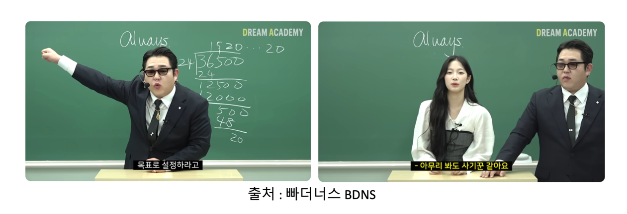 즉, 화두인 만큼 유튜브에서 공감을 이끌어낼 수 있는, 소재가 될 수 있다는 뜻입니다. 대표적인 콘텐츠는 빠더너스 BDNS의 <Dream Academy>라는 콘텐츠입니다. 일반적인 강의라기엔, 사치스럽고 과도한 착장에, 하루에 10분씩 일찍 와 행동을 바꾸면, 10년이면 36,500시간이며, '내 인생'을 바꾸기 충분한 시간이라 이야기하죠. 이를 '10 minute priority'라는 용어로 멋들어지게 설명합니다. 'impossible'에서 관점을 틀으면 'I'm posiible'이 된다고 이야기하죠.