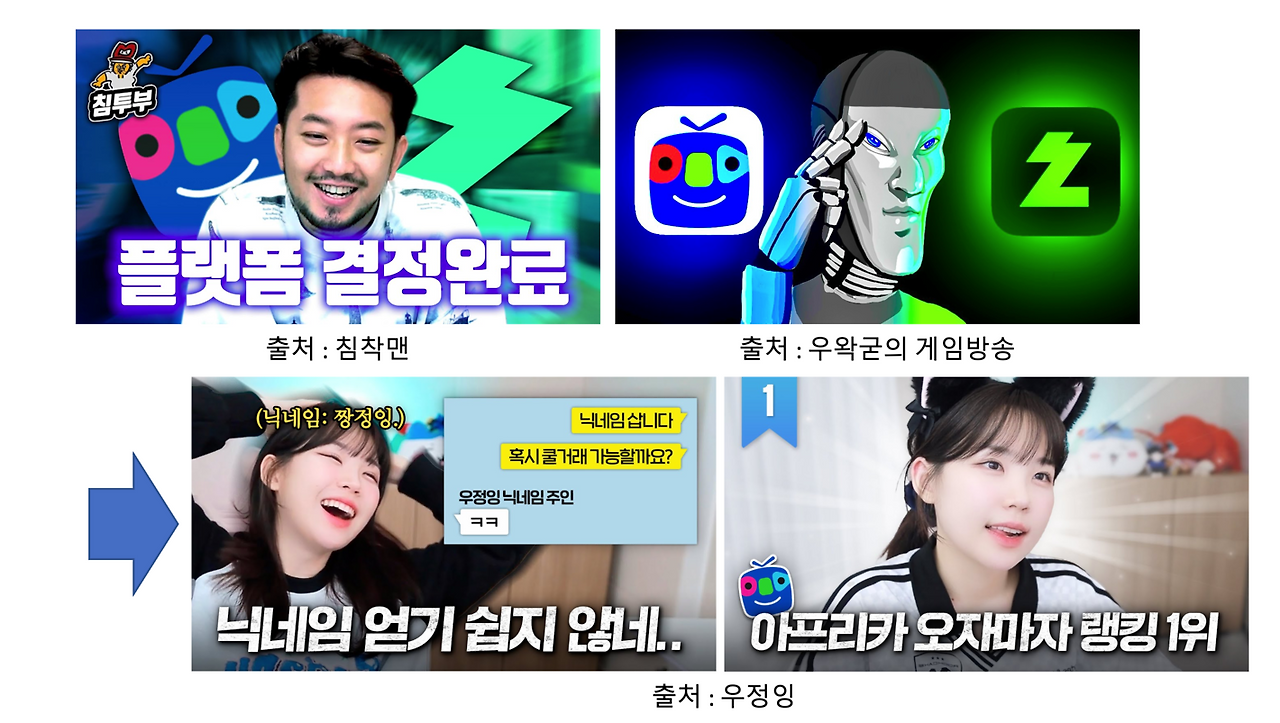 그럼 플랫폼을 이동한 후, 해당 플랫폼 적응기도 인급동에 갑니다. 우정잉님이 아프리카에서 자신의 닉네임을 정하는 영상과 실시간 인기 탭에 들어가는 영상이 인급동에 갔죠. 특히 우정잉님은 팬분들과 라이브에서 티키타카를 정말 정말 잘하십니다. 관계 비즈니스의 핵심이죠.