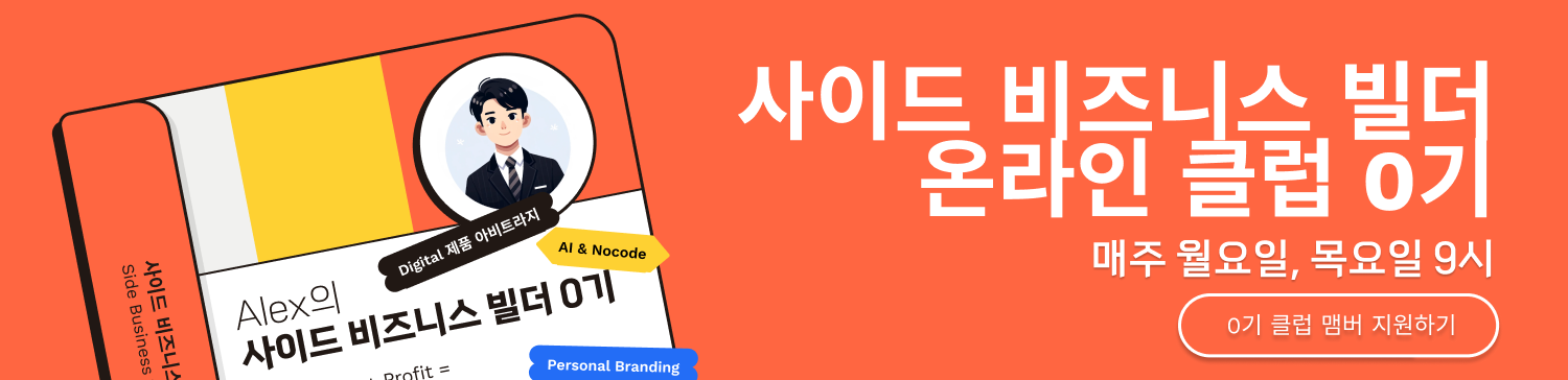 그리고...! 이 글을 읽고서 사이드 비즈니스를 구축하는 데 관심이 생기셨나요? 그렇다면, '사이드 비즈니스 빌더 Feat 온라인' 0기에 참여해 보시는 건 어떨까요?