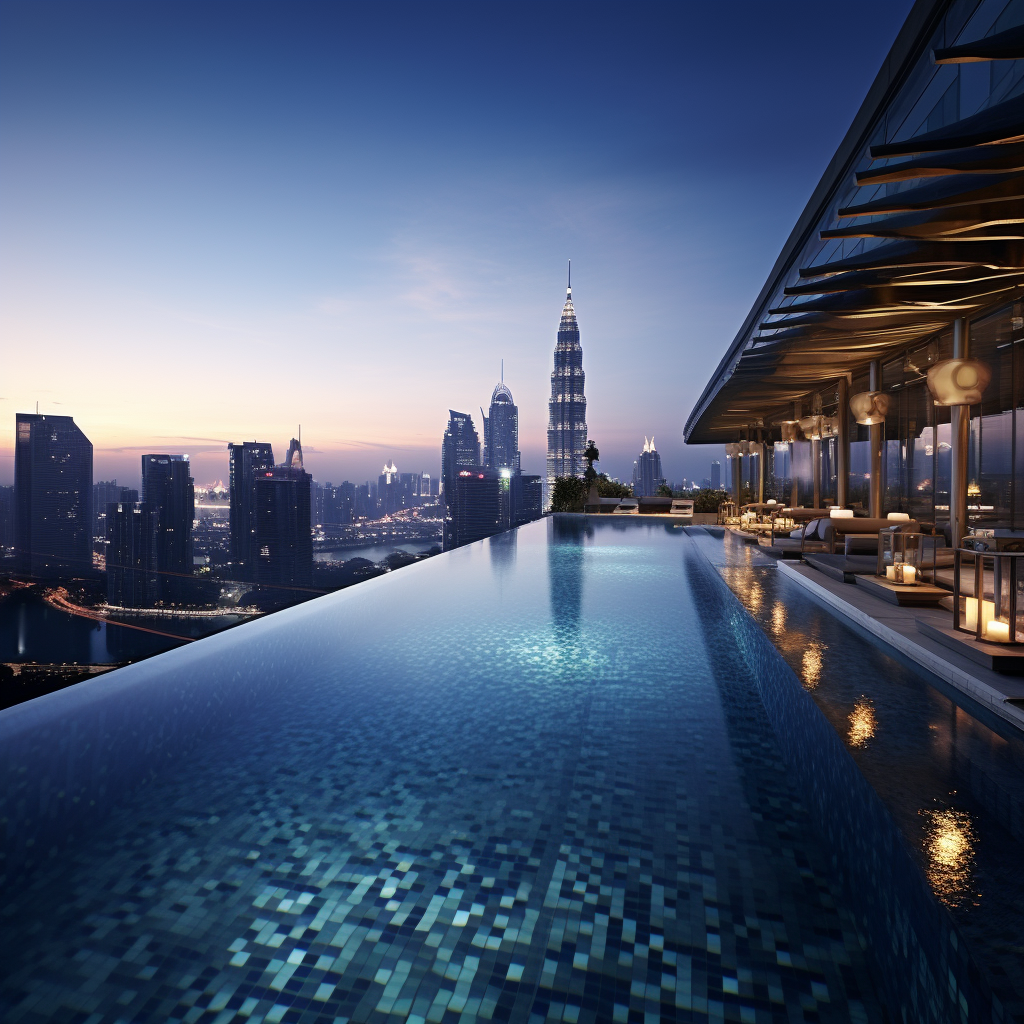 스카이라인과 결합되도록 설계된 호텔 최상층의 숨막히는 인피니티 풀은 고객들에게 도시의 최상부에서 잊지 못할 경험을 제공합니다.