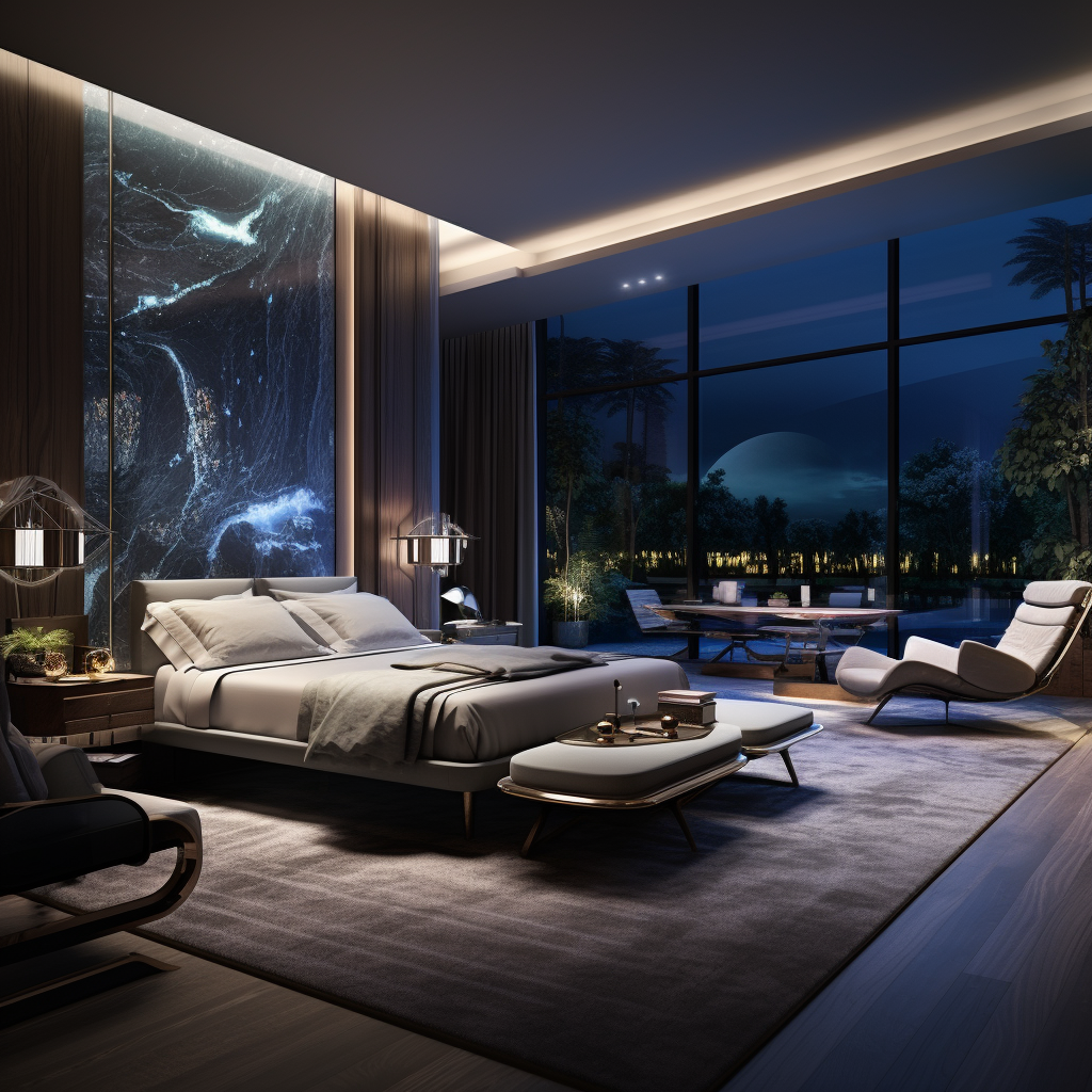 스마트 온도 제어, 조정 가능한 조명 및 몰입형 엔터테인먼트 시스템이 특징인 개인화된 편의를 제공하는 하이테크 객실입니다.