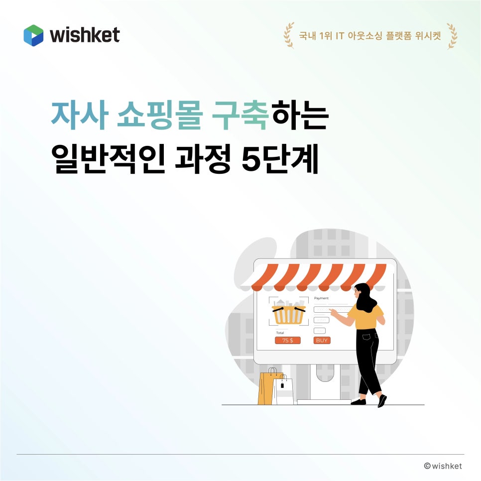 그렇다면 쇼핑몰은 어떤 과정을 거쳐 제작할 수 있을까요? 쇼핑몰 제작의 일반적인 프로세스를 알아봅시다.(5단계)