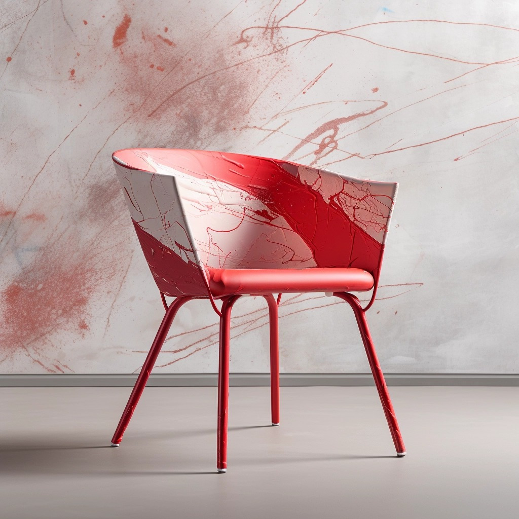 Design a package for Beautifully Designed Chair in a Bauhaus style inspired by the art of Cy Twombly, Shades of red color scheme