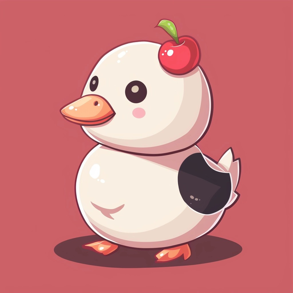 Game Assets of duck, Naïve drawing, Cute and dreamy, Cherry Red, White, and Black, Sienna background