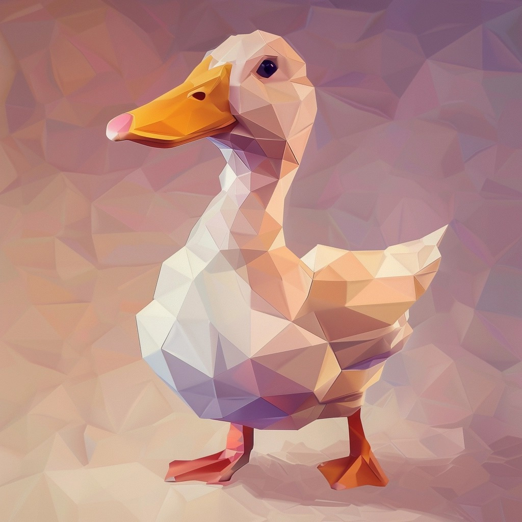 Low Poly Character illustration of duck, Soft-focus technique, Babycore, Peach, Cream, and Brown, Plum background