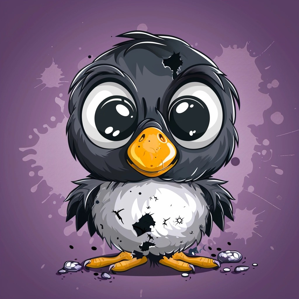 Emoticon illustration of duck, Hatching, Gothic references, Black, White, and Gray, Deep purple background