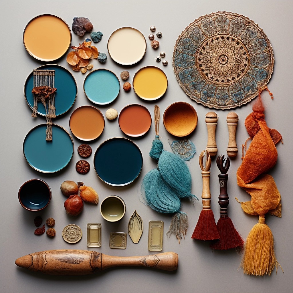 3. 공예 도구 제품 디자인: Design Craft Supplies in a Moroccan style inspired by the art of Hieronymus Bosch, Analogous colors color scheme