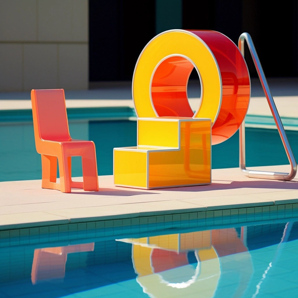 5. 풀 액세서리 제품 디자인: Design Pool Accessories in a Futuristic style inspired by the art of Marcel Duchamp, Bright and vibrant color scheme