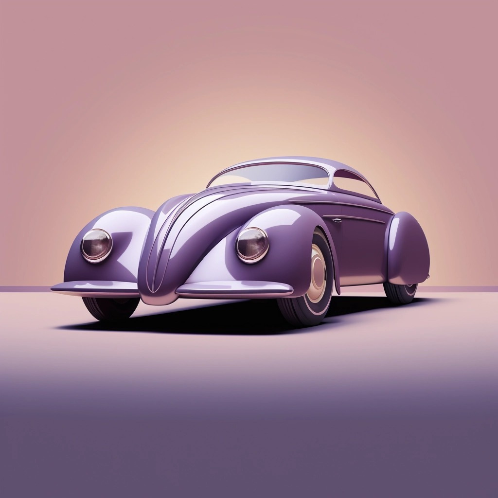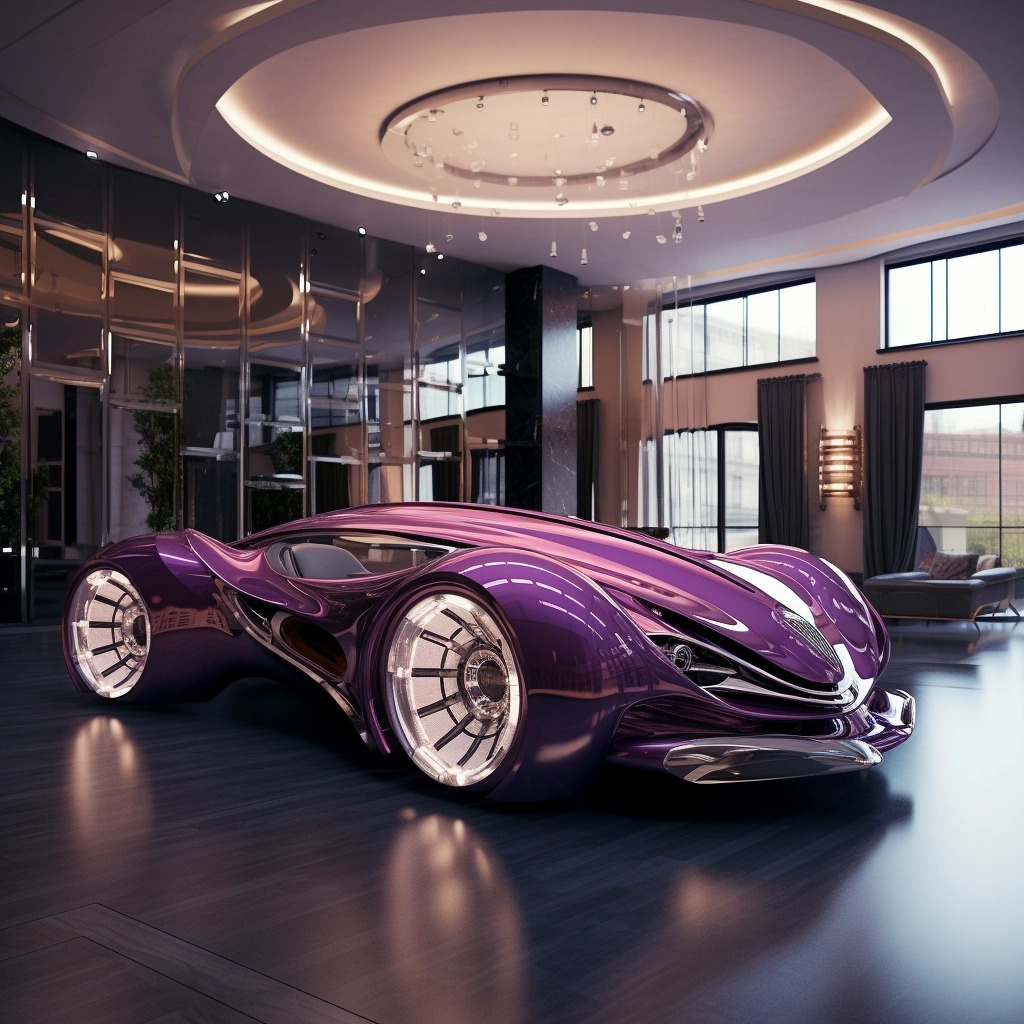 Design automobile in a International style inspired by the art of IA Interior Architects, Purple and silver color scheme (IA Interior Architects의 예술에서 영감을 받은 인터내셔널 스타일의 자동차 디자인, 보라색 및 은색 색상)