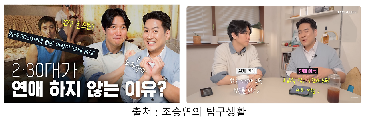 즉, 일반인 소개팅 프로그램이 대세인데, 그럼에도 불구하고 솔로와 비혼인 사람들이 점점 늘어나는지에 대해 ‘뇌과학적’으로 푼 영상이 인급동에 가기도 했죠.