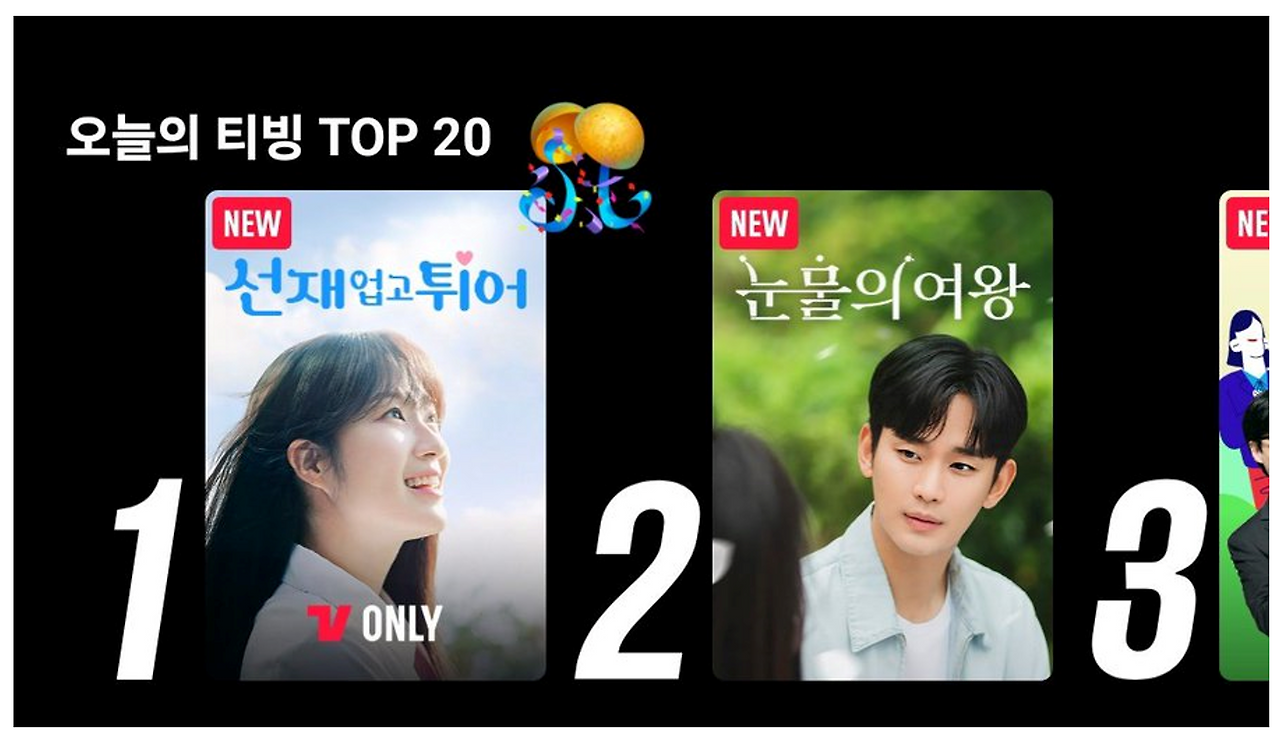 그리고 '타임슬립 + 청춘 + 로맨스 + 멜로가 다 있어서, 한국판 <상견니(想見你)>같다'라는 tvN의 <선재 업고 튀어>도 시청률 3.1%로 시작하여, 4.8%가 나왔습니다. 티빙에서는 3-4화 만에 1등으로 랭크되기도 했죠.