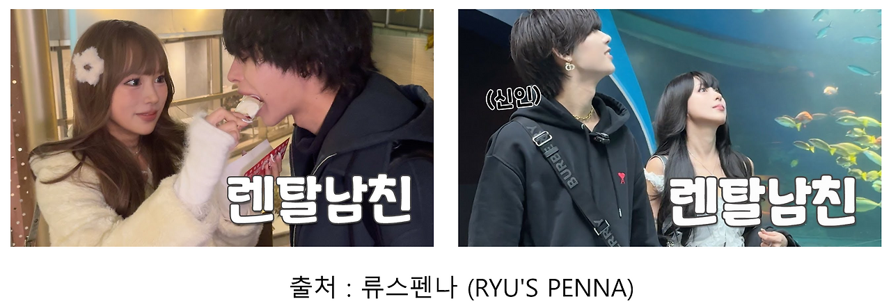 이렇게 시청자들은 콘텐츠를 통해, '연애'에 대한 대리 만족을 하고 있죠. 그리고 최근의 유튜브 트렌드에 맞춰서, 뜬 특이한 사례가 있습니다. 바로 일본의 '렌탈 남친', '렌탈 여친'이죠.