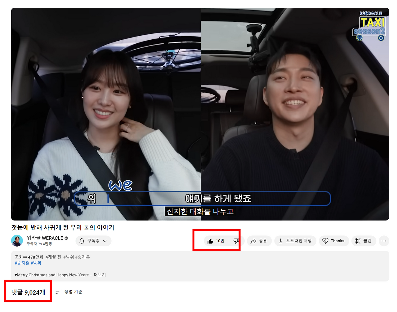 댓글이 1,000개 이상은 달리며, 좋아요도 1.5만 이상 있죠. '첫눈에 반해 사귀게 된 우리 둘의 이야기' 영상엔, 좋아요가 10만 개, 댓글이 9,024개가 달렸습니다.