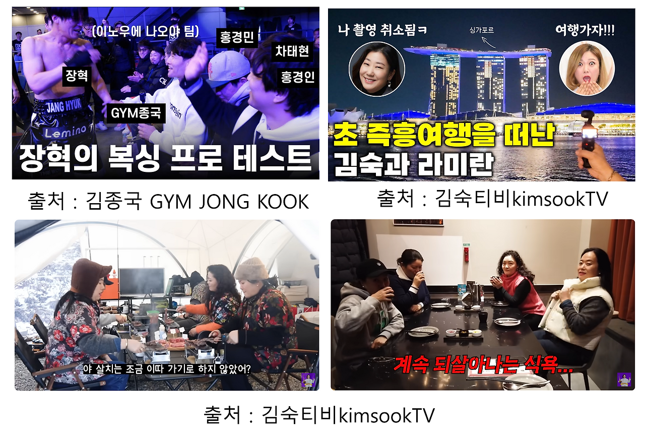 세계여행 크리에이터 분들이 친구 분들(=여행 크리에이터 분들)과 편히 만나서 이야기하는 영상들도 인급동에 가고 있습니다. 시청자들이 일상에서 친구들과 이야기 나누는 평범하고 소소한 주제들 혹은 고민들로 채워져 있고요.