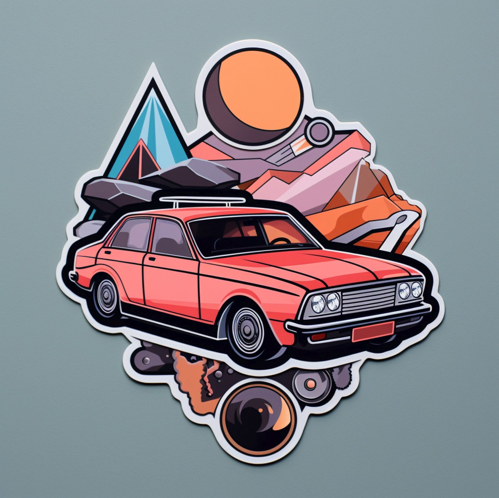 스티커 디자인 4. Sticker of automobile, Angular, Caninecore, Sapphire, Silver, and Black, Salmon pink background