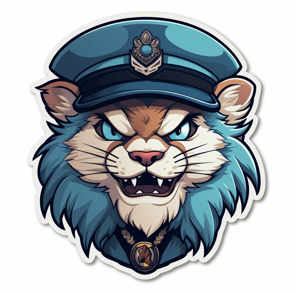 스티커 디자인 8. Sticker of police, Animated expressions, manticore, Teal, Gray, and White, White background