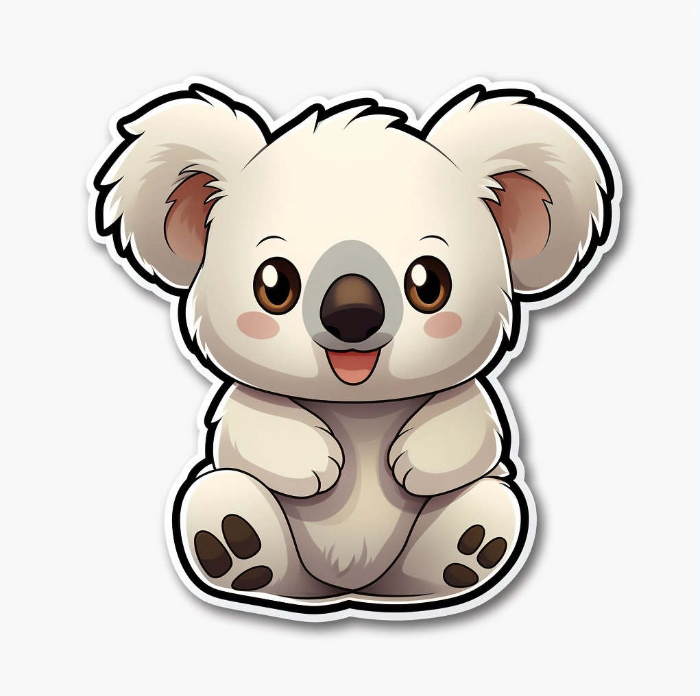 스티커 디자인 9. Sticker of Koala, 2D character, Toycore, light beige and beige, White background