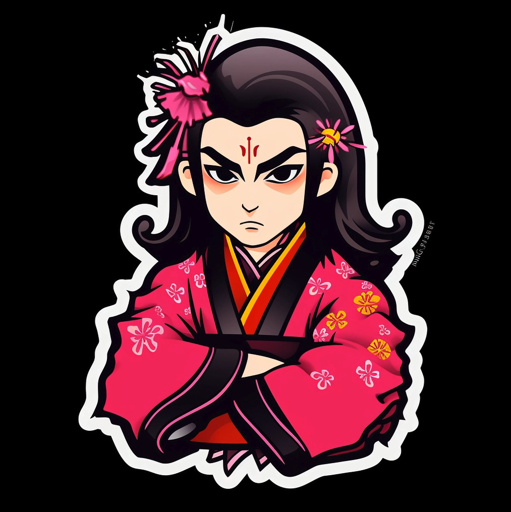 스티커 디자인 5. Sticker of nobility, Comic/cartoon, Sōsaku hanga, Magenta, Black, and Silver, Dark orange background