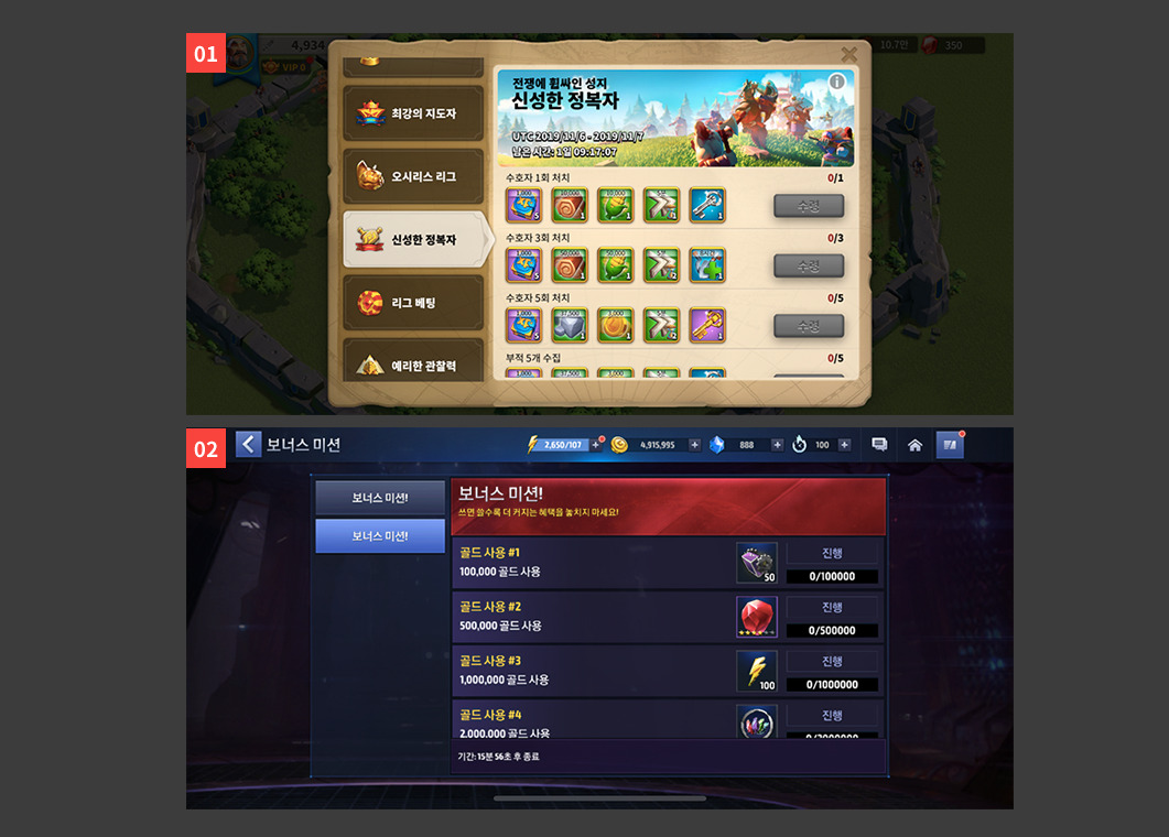 - 각종 미션과 퀘스트, 이벤트 등으로 계속 재화를 공급하고 유저의 재화 지출량을 서서히 늘리세요.