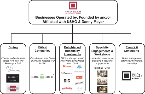 ๊ทธ์ ํํ์ ๋ฐ๋ฅด๋ฉด โ์ฝ๊ฐ์ ํ ์ค์นด๋์ ์ฝ๊ฐ์ ๋ณด๋ฅด๋ ๊ทธ๋ฆฌ๊ณ ์ฝ๊ฐ์ ์ํ๋์์ค์ฝโ๊ฐ ์์ธ ์๋น์ ๋ง๋ค๊ธฐ๋ก ํ๊ฑฐ์ฃ . ๊ทธ๋ 1985๋ ์ ์ด ์๋น์ ์ฐฝ์ ํ๊ณ , ์ด ์๋น์ ์ฌ์ ํ ์์ ์ค์ ๋๋ค. ๊ทธ๋ฆฌ๊ณ ๊ทธ๊ฐ ์ธ์ด ํ์ฌ์ ์ด๋ฆ๋ ์ด ์๋น์ ์ด๋ฆ์ ๋ฐ โUnion Sqaure Hospitality Groupโ์ด ๋์์ฃ .