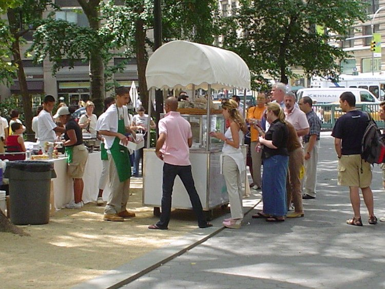 ๊ทธ์ ์ฒซ ๋ ์คํ ๋์ ์ด๋ฆ์ Union Sqaure Cafe ์์ต๋๋ค. ๋ด์์ ์ ๋์จ ์คํ์ด ๊ทธ๋ฆฐ๋ง์ผ์์ ๋ฐ ๋ธ๋ก ์ ๋ ๋จ์ด์ง ๊ฑฐ๋ฆฌ์๊ธฐ ๋๋ฌธ์ ๋ถ์ธ ์ด๋ฆ์ด์์ฃ . ๋น์์ ๋ด์์ ๋ค์ด๋์ ์ ํต ํ๋ ์น ์ผ๋ณ๋์์ง๋ง, ๊ทธ๋ ํจ์ ๊ณ ๊ธ ์์์ ๋ง๋ค๊ธฐ๋ก ๊ฒฐ์ ํ์ต๋๋ค.