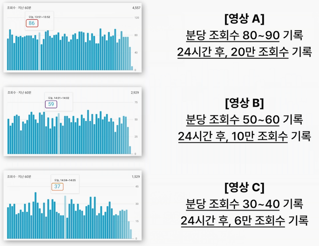 ์ ํ๋ธ์ ์์์ ์ฌ๋ฆด ๋๋ง๋ค, ์ ํ๋ธ ์คํ๋์ค์์ ์ค์๊ฐ ์กฐํ์ ์ค, ๋ถ๋น ์กฐํ์๋ฅผ ๊ธฐ๋กํด์, ์์์ ํต๊ณ๋ฅผ ๋ด์ ์ผ ํฉ๋๋ค. ๊ทธ๋์ผ ์ ๊ท ์ฝํ ์ธ ์ ๋ํ ๊ฐ์ด ์กํ๋๋ค.