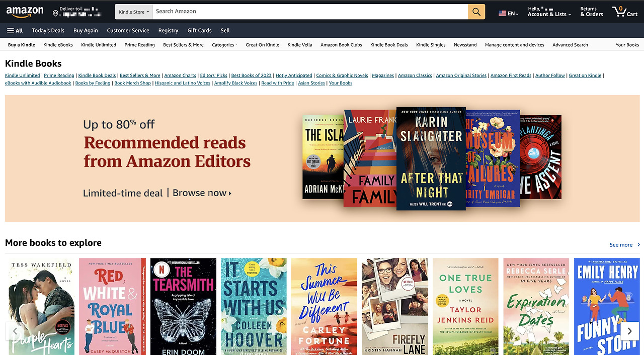 아래는 아마존 사이트의 전자책 카테고리입니다.