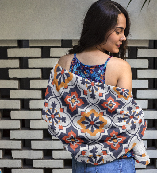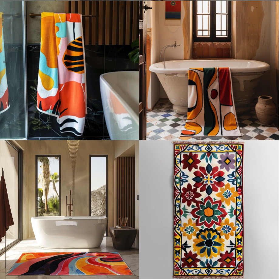 Design Towel in a Moroccan style inspired by the art of Emmanuelle Simon, Bold colors color scheme --ar 1:1