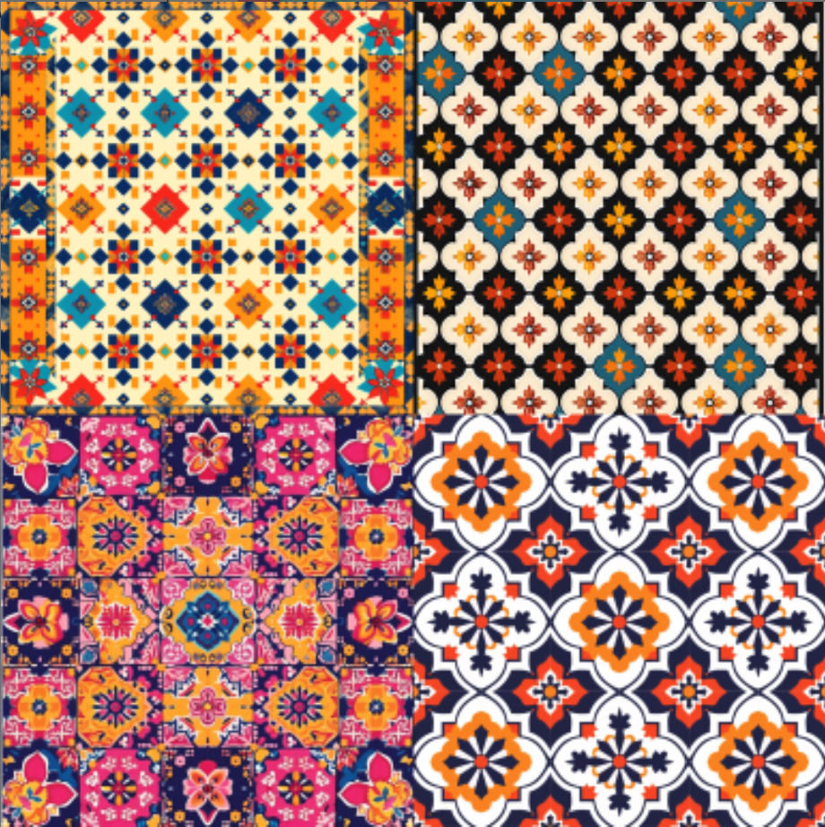 Moroccan-inspired towel design pattern by Emmanuelle Simon, bold colors, flat 2D illustration, intricate geometric shapes and motifs, seamless repeating pattern --ar 1:1