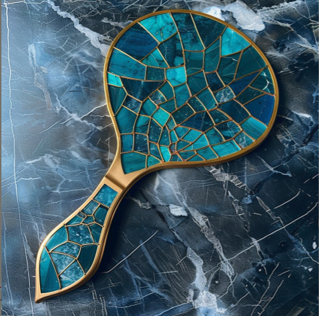 손거울 디자인 9: Design hand mirror in a Moroccan style inspired by the art of Jasper Johns, Indigo and teal color scheme --ar 1:1