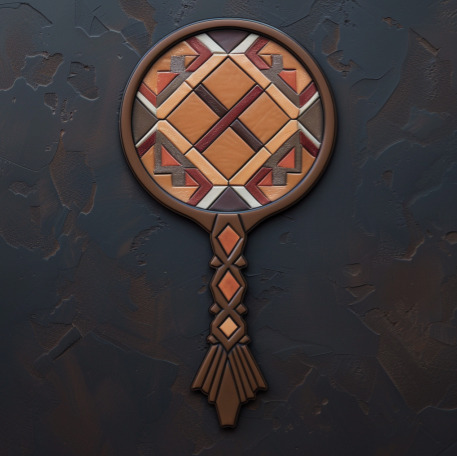 손거울 디자인 7: Design hand mirror in a Pueblo Revival style inspired by the art of Dorothea Lange, Shades of brown color scheme --ar 1:1