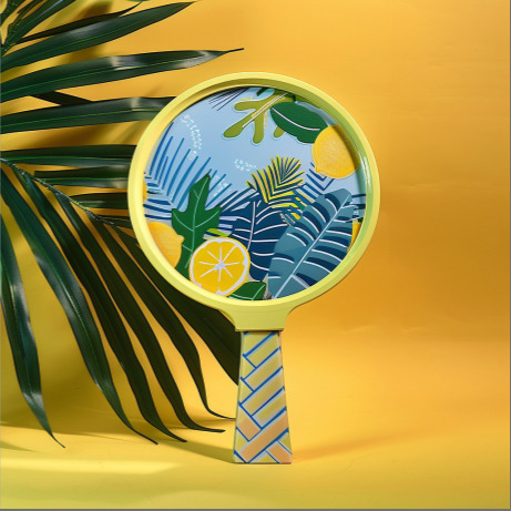 손거울 디자인 5: Design hand mirror in a Tropical style inspired by the art of Frank Stella, Lemon and lime color scheme --ar 1:1