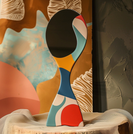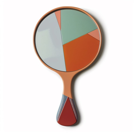 손거울 디자인 3: Design hand mirror in a Abstract style inspired by the art of Gustave Courbet, Complementary colors color scheme --ar 1:1