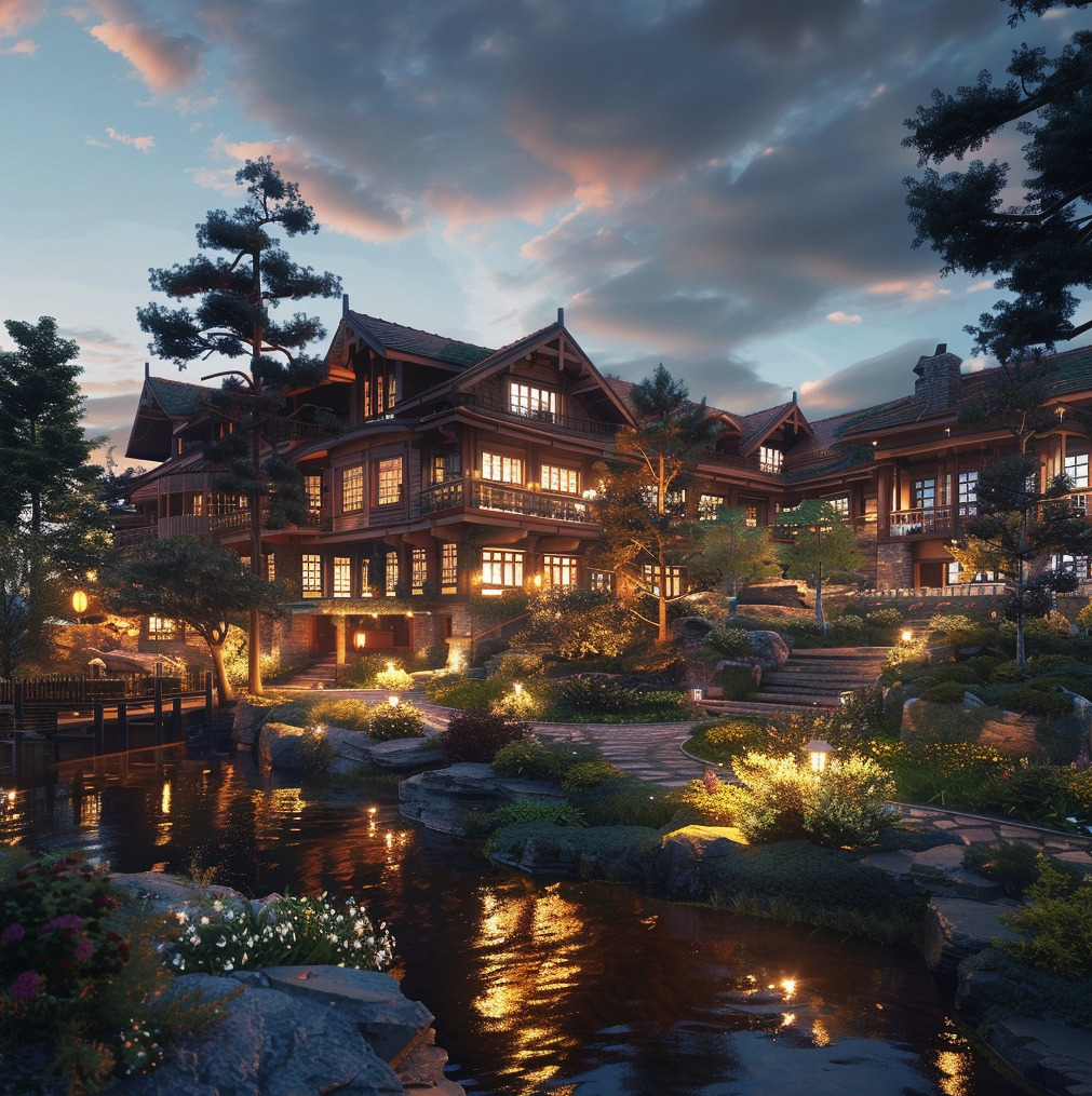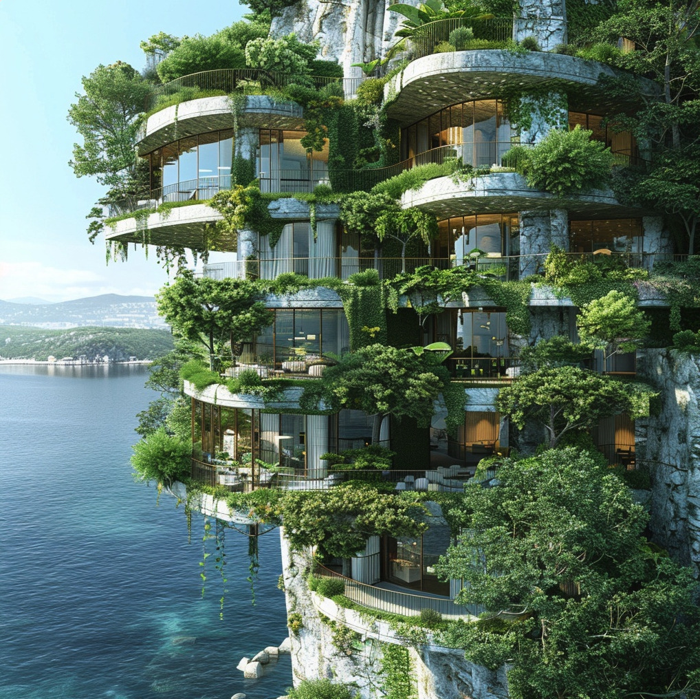 이렇게 만들어진 호텔 건축 디자인 몇 개를 미드저니 프롬프트 메이커가 만들어준 프롬프트와 함께 소개합니다.