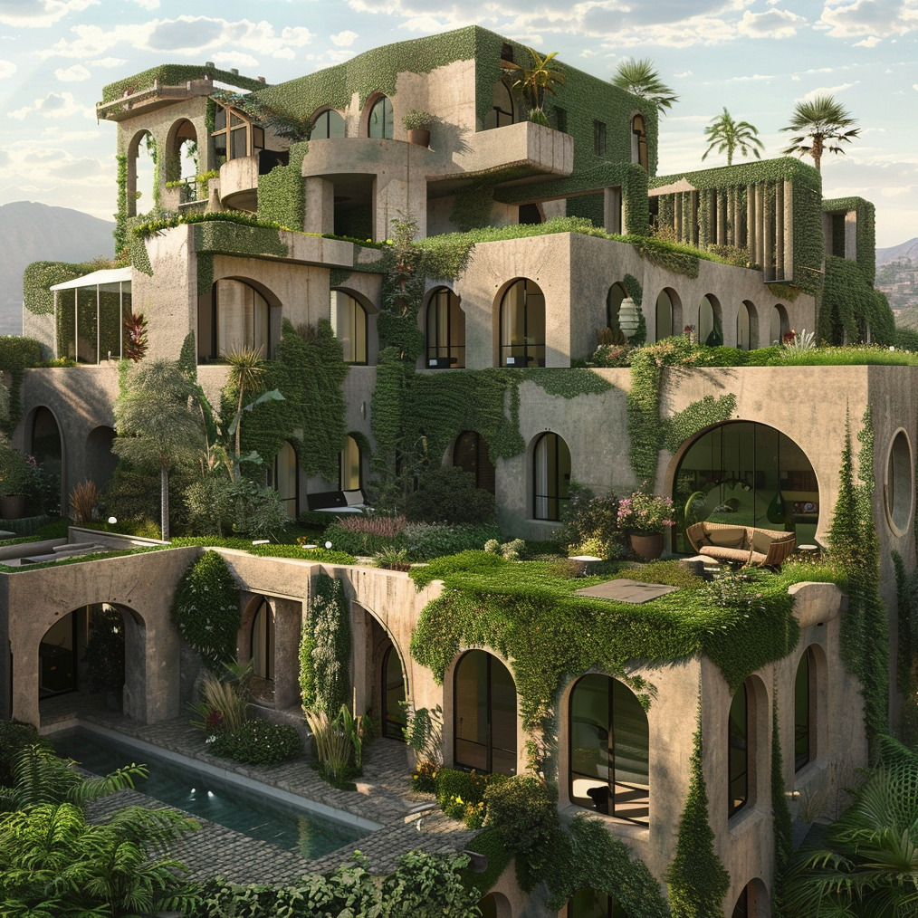 호텔 건축 디자인 6: A Hotel of a Panoramic View in a style, with Edible garden. Rendered in Arnold by Helmut Jahn