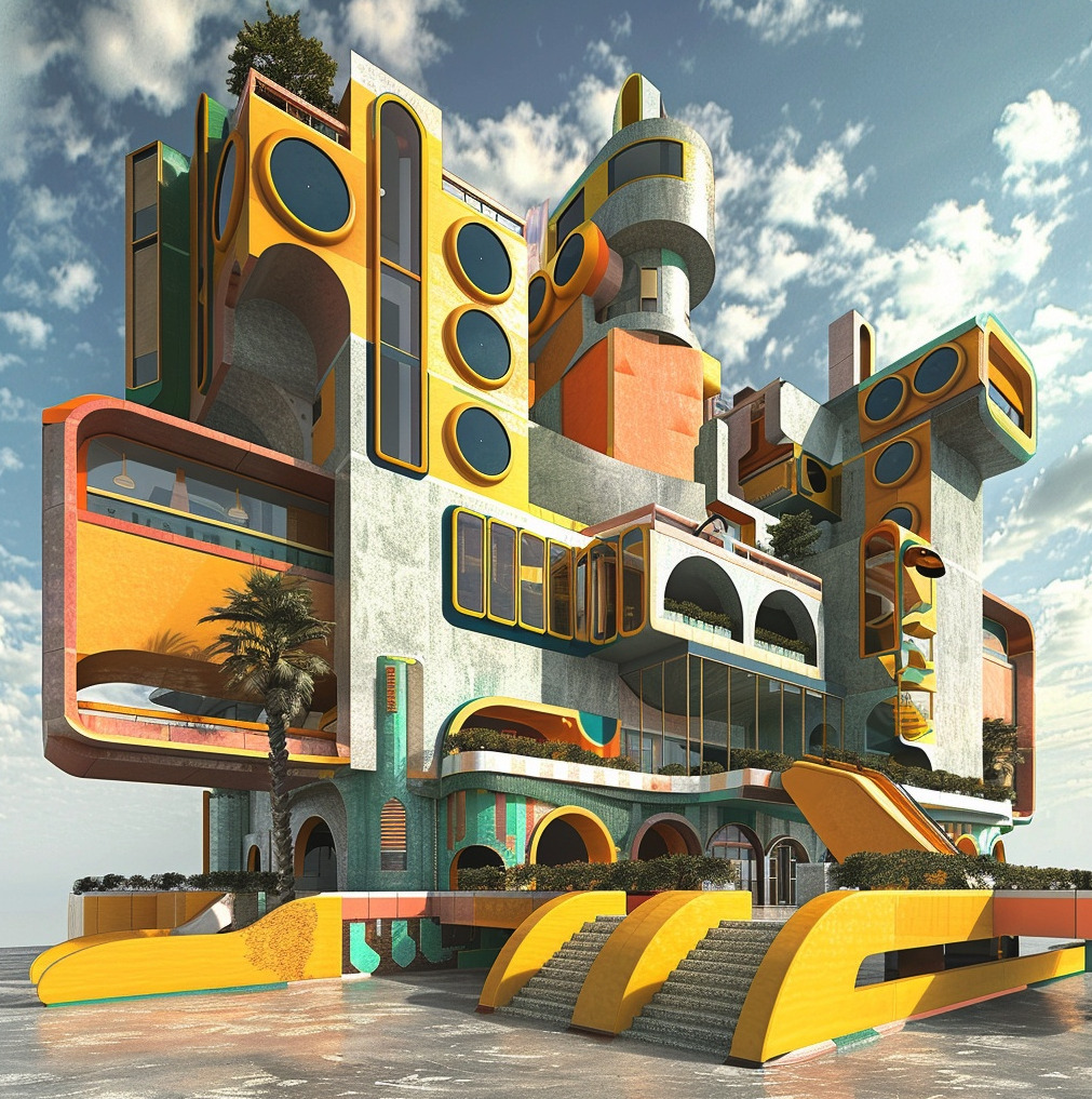 호텔 건축 디자인 4: A Hotel of a Perspective View in a Cubist style, with Maximalist design. Rendered in Mental Ray by Cesar Pelli