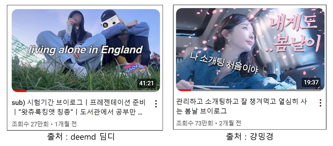 갓생의 대표 크리에이터인 deemd 딤디님과 강민경님의 영상은 꾸준히 인급동에 갑니다. 그만큼 많은 시청자들이 두 분의 갓생 브이로그에 공감하고, 꾸준히 본다는 뜻입니다.